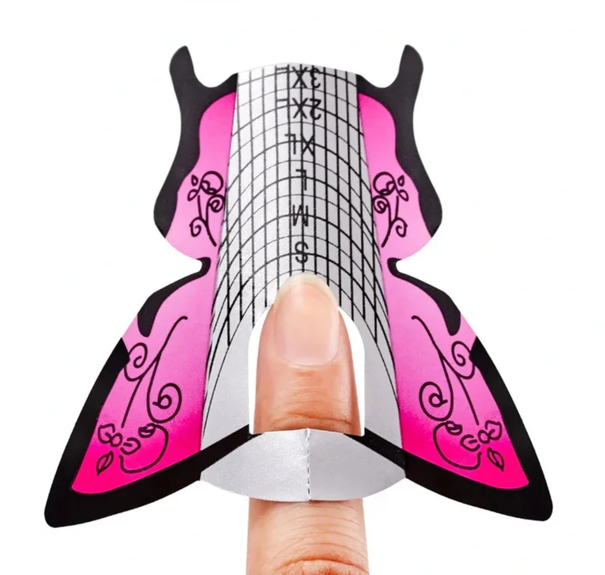 Kelebek şablon, protez tırnak uygulamasında jel ve ya akrilik tekniklerinde pratik kullanım sunan profesyonel bir yardımcı ekipmandır. Pakette bulunan 500 adet kelebek form, hızlı şekillendirme ve doğru uzunluk belirleme için ideal bir çözümdür.