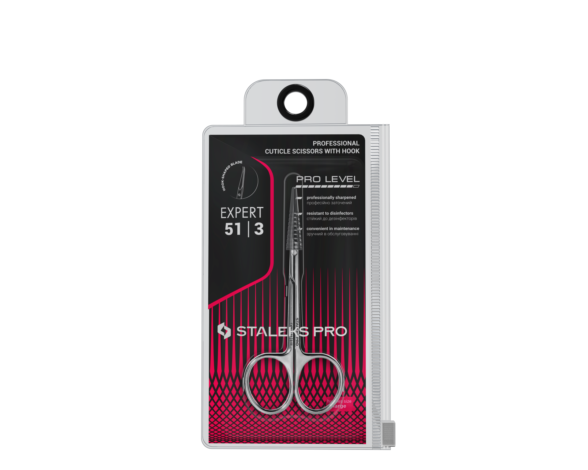 - Kancalı makas, ustaya çalışma alanın mükemmel bir görünümünü sağlar; tırnak sinüs alanında bileği bükmeye ihtiyacı kalmaz, uzun süreli çalışma sırasında el yorulmaz.